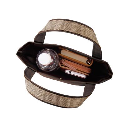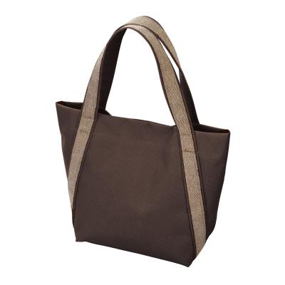 斜めに配置されたハンドルがスタイリッシュなミニトート。