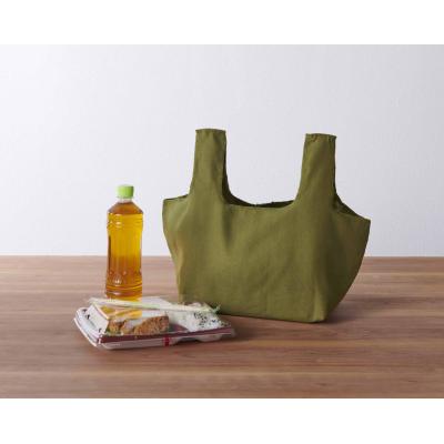 横も底もマチをたっぷり備え、コンビニ弁当がフラットに収まります。バンドで手の平サイズに折りたたみが可能です。高見えするスエード風生地を採用。ショップ名やロゴを入れてオリジナルエコバッグを製作できます。ランチや小買い物に便利で、知名度もアップします。