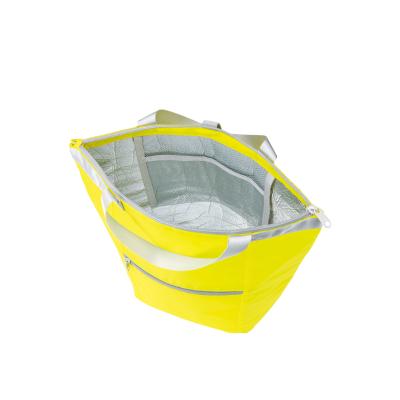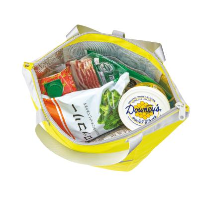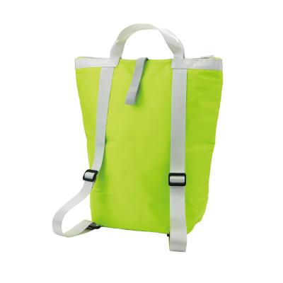 手持ちとリュックの2WAY。自転車での買い物もラクラクです。縫い付けのゴムバンドで小さくまとめられるので持ち歩きにも便利。内側には保冷剤用メッシュポケット付き。