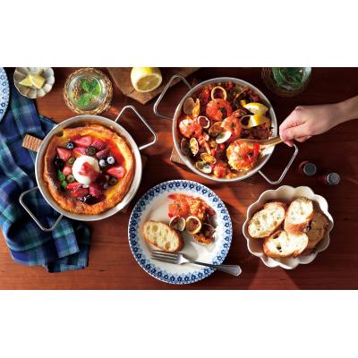 最近流行のキャンプ・BBQやベランピングなどにも最適で、おススメレシピも付いていますので食材の準備なども楽チンです。レシピにはシーフードパエリア/ダッチベイビー(ドイツ風パンケーキ)/パンキッシュ/お好み焼き が記載されています。