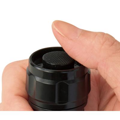 スイッチ1回で強点灯/2回で弱点灯/3回で点滅。オレンジ色のダイヤルを回して照射範囲を調整も可能。付属のネックストラップで首にかけられるので、両手が空くのも便利です。アウトドアはもちろん、もしもの備えとしてもおすすめしたいアイテムです。