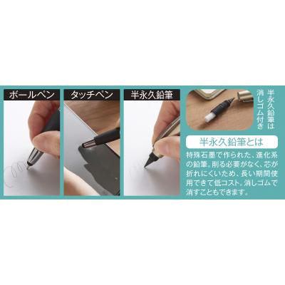 繰り返し使える半永久鉛筆付き!タッチペン・ボールペン・鉛筆の3機能を備えています。