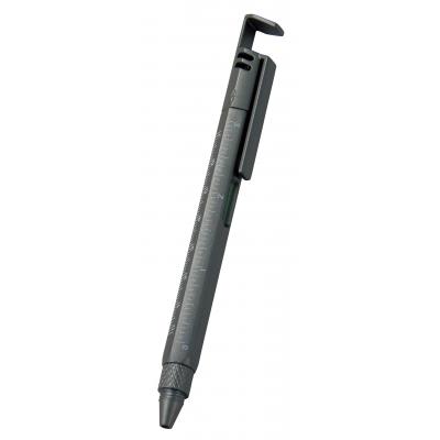 スマホスタンド、水平器、+-ドライバー、インチ表示、センチ表示、ボールペン、1/200スケール表示の8機能を搭載した多機能ペンです。ペンケースや胸ポケットに常備しておけば様々なシーンで活躍!ブルー・グレー・ブラックの3色カラーで、本体に企業やお店のロゴなどの名入れをすればより宣伝効果があります。