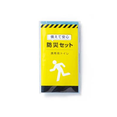 | 材質 | 持出袋/ポリエステル アルミシート/アルミニウム・ポリエチレンテレフタレート ホイッスル/ポリスチレン マスク/不織布(ポリプロピレン) 防災のしおり/紙 給水袋(3L)/PET・ポリアミド・ポリエチレン ミニライト/アルミニウム・ABS樹脂・PVC・鉄 ボタン電池LR44 3個付属 携帯トイレ/ポリエチレン・不織布・高分子吸収剤 軍手/綿・ポリエステル |