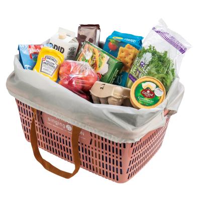 レジカゴにそのままセットできる保冷温バッグ。買い物をスムーズにしてくれる便利アイテムです。