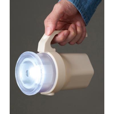 単一から単四までどの電池でも1本あれば使えます。ハンドル部分のスイッチを押す回数で、<強→弱→点滅→消灯→SOSモールス信号>に切り替わります。自宅・企業の防災の備えとして重宝します。