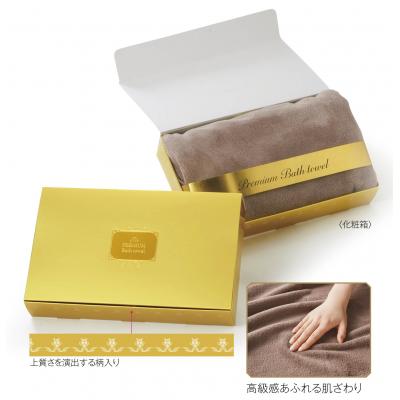 プレミアムバスタオルは、風合いから化粧箱に至るまで、上質を追求した逸品です。ゴールドの化粧箱にデザインを施し、特別感を演出。極上の肌触りを誇り、贈り物や記念品として最適。住宅展示場や金融関係の成約プレゼントとして人気で、肌寒い季節のノベルティや景品としてもおすすめです。