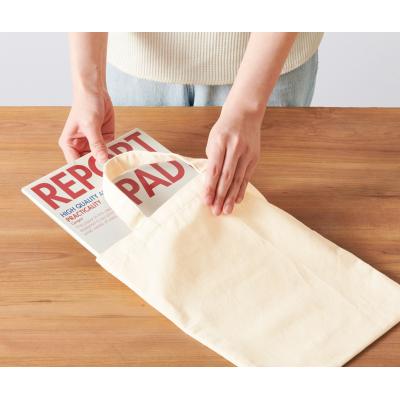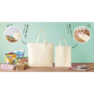 薄手で小さく折り畳む事もできるので、エコバッグとしてもおすすめ。マチがないフラット仕様なので、資料やカタログ入れに最適です。シンプルなコットンバッグなので名入れ印刷をぜひご利用下さい。名入れ範囲も広く会社名やブランドロゴが目立ちます。低価格なので大ロットのノベルティにおすすめです。