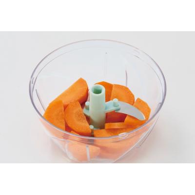 大まかにカットする必要はありますが、包丁よりもスピーディーで安全です。玉ねぎやニンニクのニオイが手に付く心配もなく、目が痛くなることもありません。フタ、刃、容器はシンプルな構造で、分解して洗えるので衛生的。お子様も楽しく料理を手伝うことができ、ハンバーグや餃子作りなどがはかどりそう!