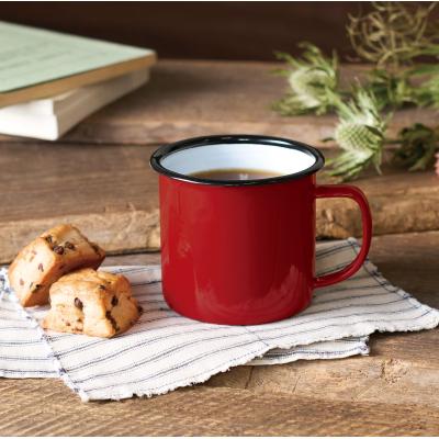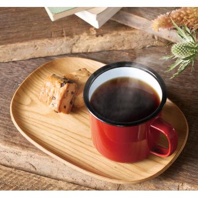 サイズは口径約8cm高さ約8cmで容量はたっぷりサイズの350ml。スチール製でホーロー仕上げが施されており、飲み物の色が残りにくく、長く使用できます。名入れにも対応し、創立記念品・設立記念品・卒業記念品など各種記念品におすすめです。また、飲食店のオープン記念品などにも喜ばれます。