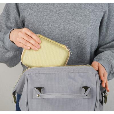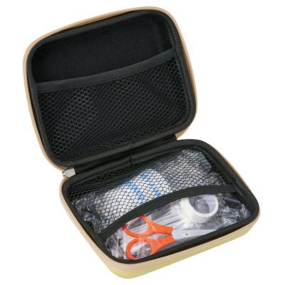 バッグに入れやすいスリムタイプのジッパーポーチに、応急処置に便利な包帯・綿棒・サージカルテープ・ハサミの4点をセット。伸縮性と通気性に優れたPBT(ポリブチレンテレフタレート)という素材で作られた包帯は関節などにもぴったりフィット。ケースには名入れ可能で、企業の備品やノベルティとしても活用できます。