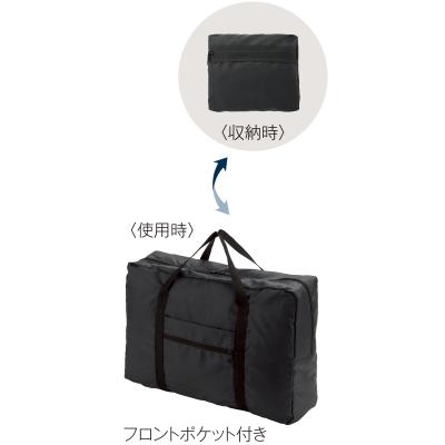 広めのマチで収納力抜群のボックス型デザインは、荷物が増える旅行や帰省時に大活躍。使わない時はコンパクトに折りたためるため持ち運びも簡単!キャリーバッグのハンドルに通せるベルト付きで移動中も安定し、オールブラックのシンプルなデザインは男女問わず使いやすい仕様。名入れ対応も可能です。