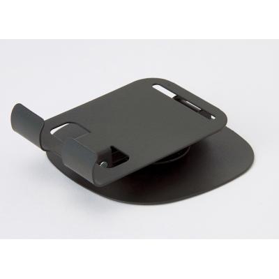 クールなブラックボディのスチール製スマホスタンド。充電しながら使えて、持ち運びにも便利な折りたたみ式