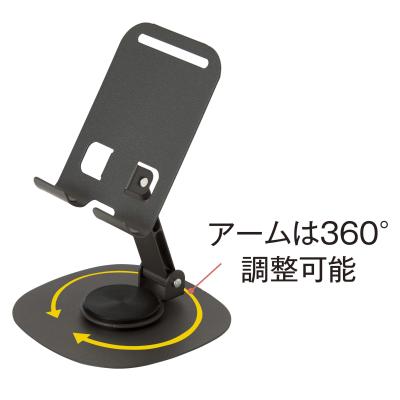 机の上に置いても邪魔にならないコンパクト設計。アーム部分は360°回転するため、動画視聴やオンライン通話などシーンに合わせてベストな角度や向きに調整できます。底面には滑り止めシートを貼れる仕様で安定感も抜群。名入れ印刷も対応しています。