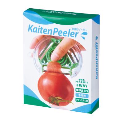 手のひらに収まる丸いフォルムに、標準皮むき・千切り・ソフトスキンの3種類の刃を内蔵。中央のダイヤルを回せば簡単に切り替えられ、定番野菜から、トマトなどの柔らかい果物まで幅広く対応できます。会話のきっかけにもなるユニークなアイテム。