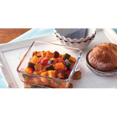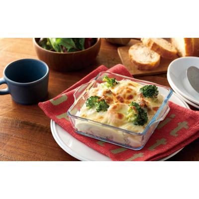 電子レンジ・オーブン・トースターに対応し、グラタンやドリア、野菜料理やスイーツ作りまで幅広く活躍。「スプーンで食べるかぼちゃカレーコロッケ」「ラタトゥイユ」「シーフードドリア」の3種のレシピ付き。見た目も美しく、テーブルにそのまま出せる実用的なオーブンウェアです。