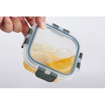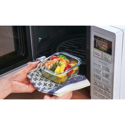 汁物を入れてもこぼれにくいパッキン付き!スタイリッシュなデザインの耐熱ガラス保存容器です。