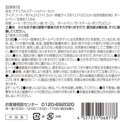 | 材質 | ノート/ポリウレタン・紙・竹・ゴム ボールペン/竹・スチール・ポリプロピレン |