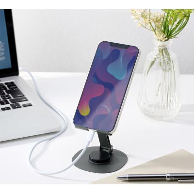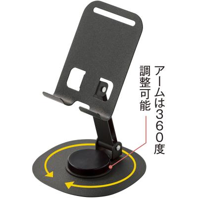 机の上に置いても邪魔にならないコンパクト設計。アーム部分は360°回転するため、動画視聴やオンライン通話などシーンに合わせてベストな角度や向きに調整できます。底面には滑り止めシートを貼れる仕様で安定感も抜群。名入れ印刷も対応しています。