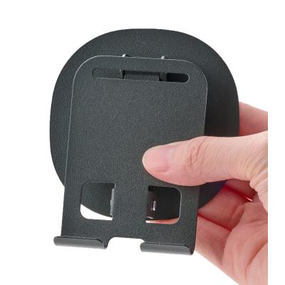 クールなブラックボディのスチール製スマホスタンド。充電しながら使えて、持ち運びにも便利な折りたたみ式