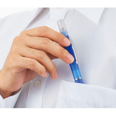 消毒用アルコールを詰めて、気になるところにシュッ!とスプレー。ボールペンとしても使えるので、オフィスや学校へ携帯しやすい商品です。中身が無くなったら詰め替えが可能です。実用的な衛生対策グッズは様々な方に喜ばれます。