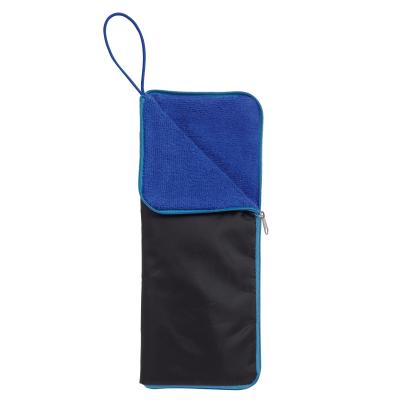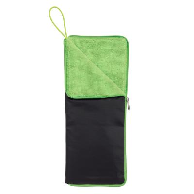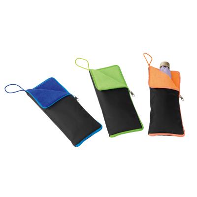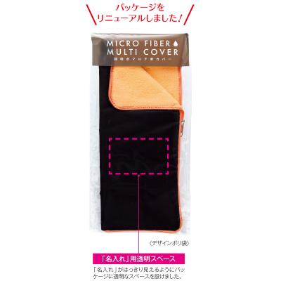 超吸水マルチ傘カバーは、マイクロファイバー製で吸水力抜群。傘カバー・ペットボトルホルダー・タオルと3通りの使い方ができ、濡れた折りたたみ傘や結露したペットボトルの収納に便利。ファスナーを全開にすればハンドタオルに変身し、濡れたバッグを拭くのにも使えます。名入れが目立つパッケージでPR効果が高く、イベントやキャンペーンで配布できるサイズも嬉しい特徴です。