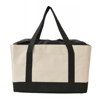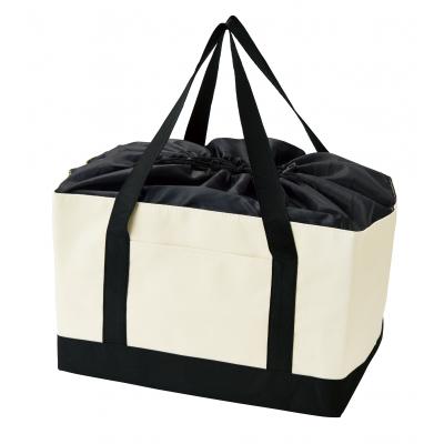 アルミ蒸着加工の大容量エコバッグ。シンプルなデザインで日常のお買い物やレジャーに最適。使い勝手が抜群で、レジカゴにもぴったり収まります。巾着仕様の口で中身を見せず、こぼれる心配もありません。