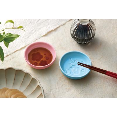 お醤油を入れると可憐な梅の花が浮かび、箸置きにもなるくぼみが付いたかわいい小皿のペアセット