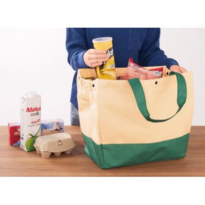 食材の買い出しからアウトドアでも使えるトートーバッグ。バッグ内側はアルミ蒸着加工が施されており、マチがしっかりとありレジカゴにセットしやすく、お買い物に最適です。マチのボタンを外せば容量もたっぷり!間口もボタンで留められ、持ち手は肩掛けでき、持ち運びに便利です。