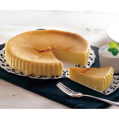 クリームチーズをたっぷりと使用し、低温でじっくりと湯煎焼きしたケーキはずっしりとボリュームがあり、しっとりなめらか、かつ口の中で広がる濃厚なチーズの香り・旨みを存分に堪能できます。ファミリーサイズでお得なベイクドチーズケーキです。