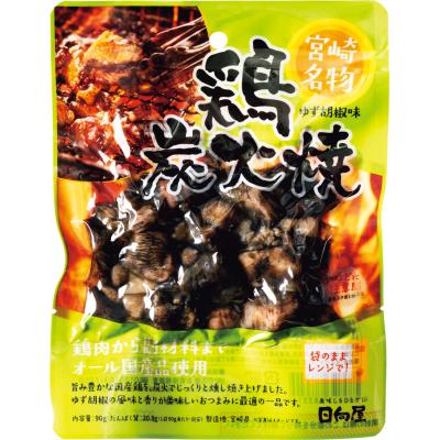湯煎・レンジで簡単調理。「鶏炭火焼」は炭火で芳ばしく燻し焼き上げた一品。調味料(アミノ酸)・保存料・着色料不使用。「鶏炭火焼ゆず胡椒味」は炭火で燻し焼き上げ、ゆず胡椒風味に。「おつまみ放浪記手羽味つけ」は国産鶏手羽を炙り焼き、自家製しょうゆダレでじっくり柔らかく。「炭火香る砂肝焼ガーリックペッパー」は鶏の砂肝を直火で焼き上げ炭火で燻し、黒胡椒とにんにくなどで味付けをしました。