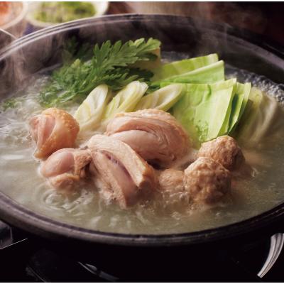<セット内容> 水たき濃縮スープ200g、華味鳥切り身200g、華味鳥つくね200g、もつ鍋スープ醤油(濃縮)200g、牛小腸200g、鶏はらみ100g、にんにくスライス5g、唐辛子1g |