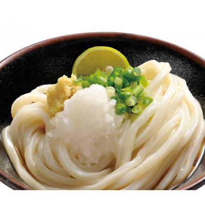 麺は生地を折りたたむ手打ちの技法を応用し、包丁切りで仕上げました。もっちりとした歯応えと旨みが自慢です。つゆは地元香川の名産地として名高い伊吹漁協産の「伊吹のいりこのだし」をベースに、すっきりとした味わいの「かけうどん」、鰹だしとのバランスの「釜揚げうどん」、コクとまろやかな味わいの「ぶっかけうどん」、和風ベースにピリッとスパイスの効いた「カレーうどん」、うどん県讃岐うどんならではの人気メニューの競演が楽しめます。