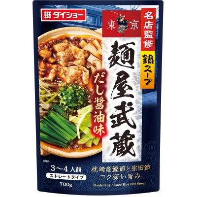 ラーメンの名店「麺屋武蔵」監修のもと、しょうゆをベースに、鶏・鰹・海老の旨みで奥深い味わいにし、にんにくやこしょうで風味のよいラーメン風の鍋スープに仕上げました。
