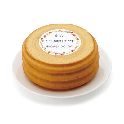 木の幹のような凹凸を表現しながら丁寧にふんわり焼き上げたバームクーヘンです。のし・包装、周年記念シール貼り対応が可能です。