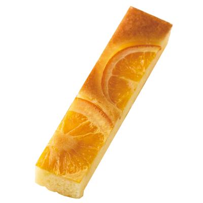 スライスカットした密づけオレンジをのせることでさらにしっとりとしたケーキに仕上がりました。お口に入れた瞬間オレンジの香りが口いっぱいに広がります。