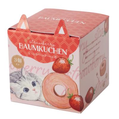 しっとりやわらかい生地のバームクーヘンに、苺の甘酸っぱさがふんわりと楽しめます。 ネコミミ付きのパッケージがとってもキュート♪