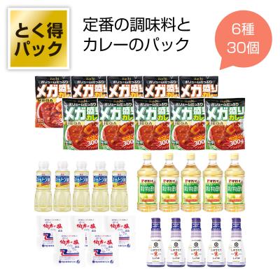 その他 <セット内容> キッコーマン しぼりたて生しょうゆ200ml×5 理研 キャノーラ油265g×5 伯方塩業 伯方の塩100g×5 タマノイ ヘルシー穀物酢500ml×5 ハチ食品 メガ盛りカレー300g甘口×5 ハチ食品 メガ盛りカレー300g中辛×5