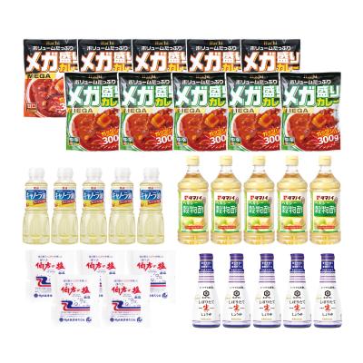 お料理に欠かせない調味料とカレーの詰め合わせ。主婦層やファミリー向けイベントの景品・来場プレゼントにピッタリ!コンペや町内会のイベント景品としても使える商品が手間なく揃います!