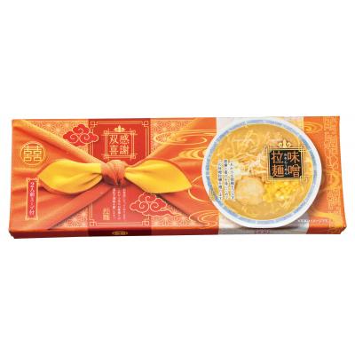 コンパクトで日持ちのする乾麺タイプの味噌ラーメン。名刺などのカードを差し込めるパッケージです。