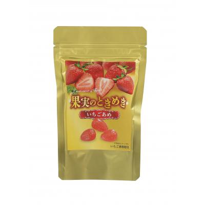 かわいらしい真っ赤な小粒の苺あめを、ディスプレイ映えするゴールドのパッケージにセットしました
