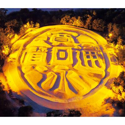 銭形砂絵「寛永通宝(琴弾公園)」と「天空の鳥居(観音寺市)」をパッケージにデザインしております。「寛永通宝」は有明浜の白砂に描かれた砂絵で東西で122m、南北で90m、周囲は345mの大きさです。「天空の鳥居」は標高404mの稲積山の頂上の鳥居越しに観音寺市街地と雄大な瀬戸内海を一望できます。