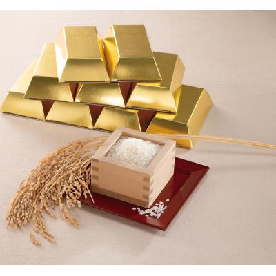 金塊型のパッケージに100gのお米をセット!店頭に積み上げれば注目度抜群のPOPになります。