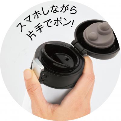 読書しながら、スマホを見ながらでも片手でポンッと楽々オープン♪入れたてキープの真空二重構造です。