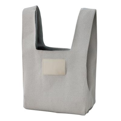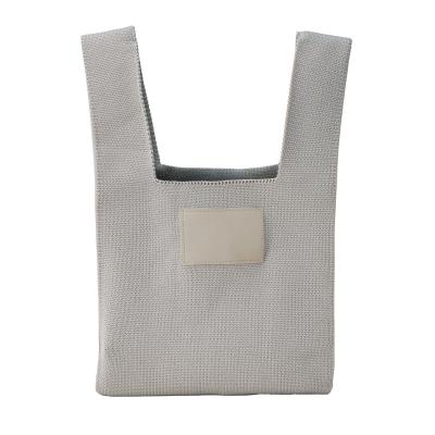 さりげないのに目を惹くトレンドのニットバッグ。やわらかな印象のグレー。