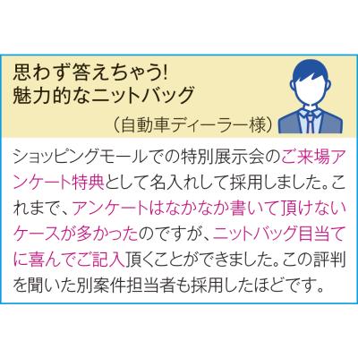 SNSで超話題のニットバッグが登場!見た目はコンパクトなのに横マチを広げられるので、見た目以上の収納が可能です。ニット生地で柔らかく伸縮性があり、サブバッグやワンマイルバッグとして普段使いしたいサイズ感。ワンハンドルスタイルでこなれ感UP!正面上部には名入れができる合皮のタグ付き。