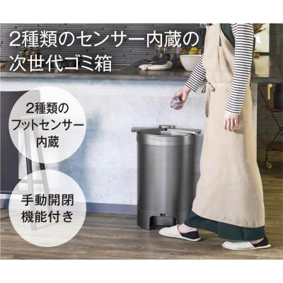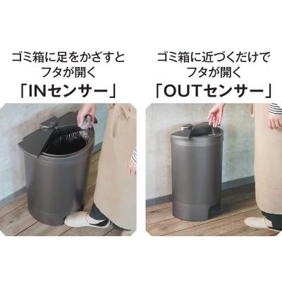 ペダルに足をかざすと蓋が開く「INセンサー」、ゴミ箱に近づくだけで蓋が開く「OUTセンサー」の2種類のセンサーを搭載。手動開閉も可能です。