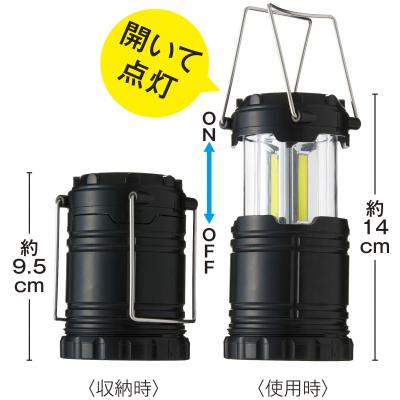 引き上げてパッと点灯!コンパクトサイズでも頼れる明るさ。置き型・吊り型の2WAYで使えます。