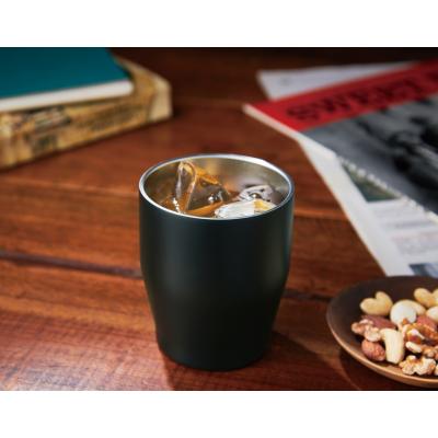 真空二重構造で保温・保冷に優れたタンブラー。シックで重厚感のあるブラックも人気のポイントです。口径が広いため、大きな氷も楽々投入可能。結露せず、デスクにも安心して置けるので、あらゆるシーンで愛されるタンブラーです。ワンポイントのレーザー名入れが映えます。