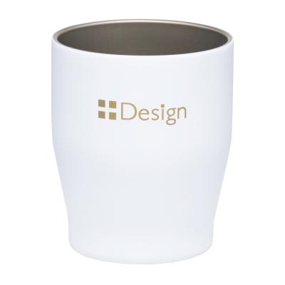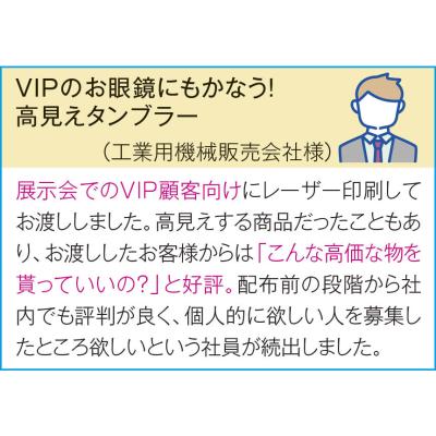 真空二重構造で保温・保冷に優れたタンブラー。清潔感のあるホワイトも人気のポイントです。口径が広いため、大きな氷も楽々投入可能。結露せず、デスクにも安心して置けるので、あらゆるシーンで愛されるタンブラーです。ワンポイントのレーザー名入れが映えます。